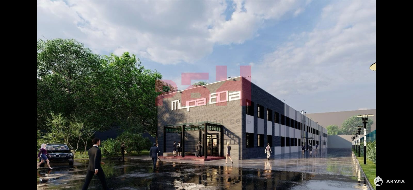 На главном фото проект благоустройства территории и обшивки фасадов здания.