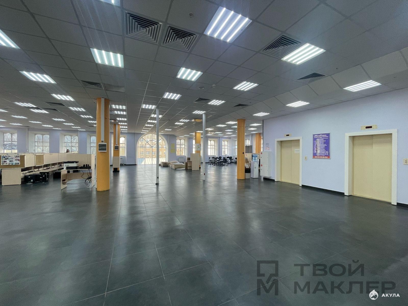 Большое количество окон увеличенного размера по всему периметру этажа - помещение очень светлое.