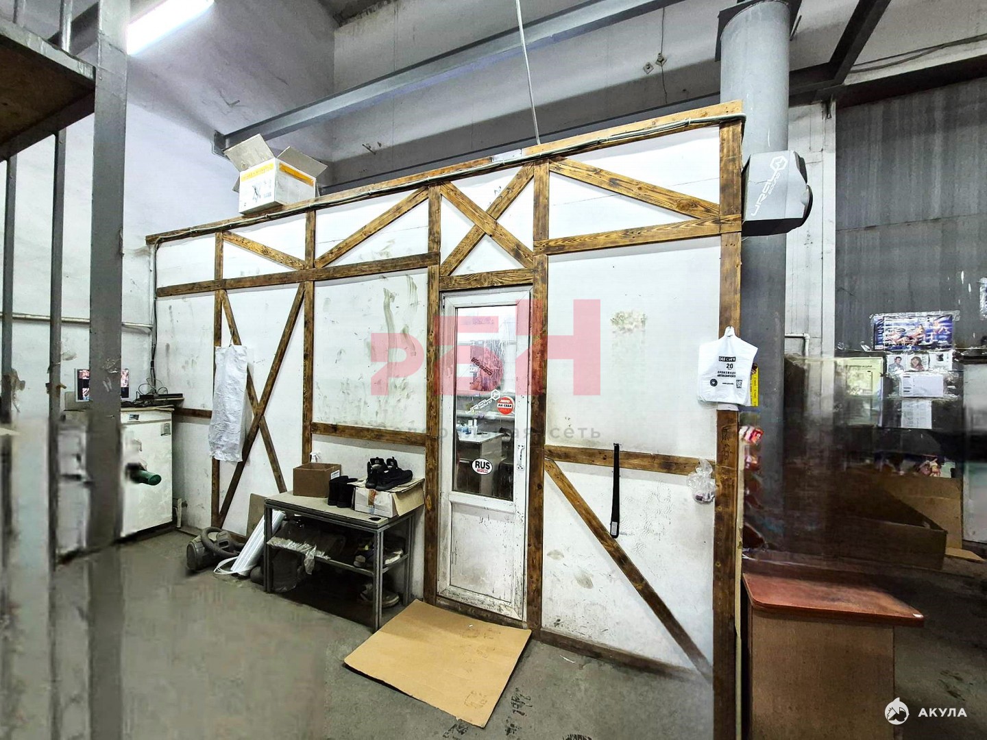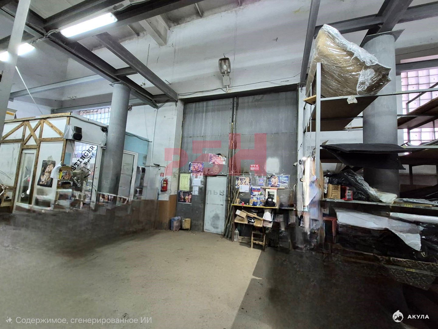 -Помещение: Внутри ровный бетонный пол, создающий оптимальные условия для размещения оборудования для высотного стеллажного хранения.