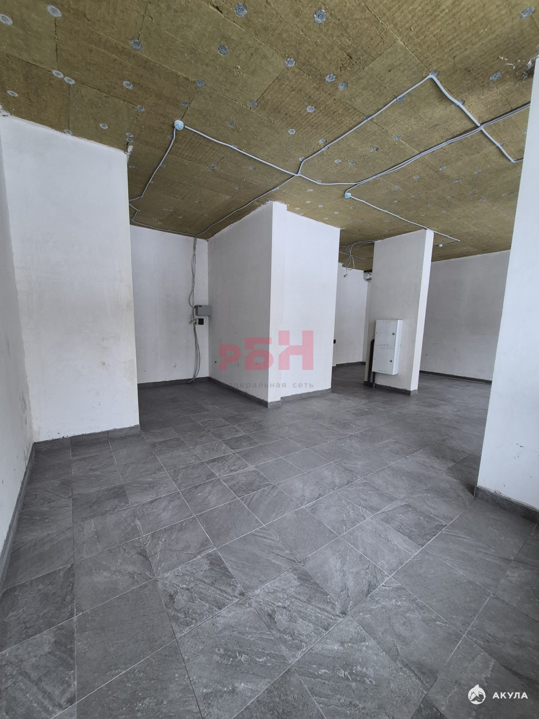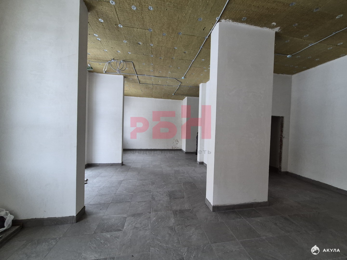 Помещение очень светлое: со стеклянной входной группой и двумя большими окнами. Высота потолков - 3, 6м.