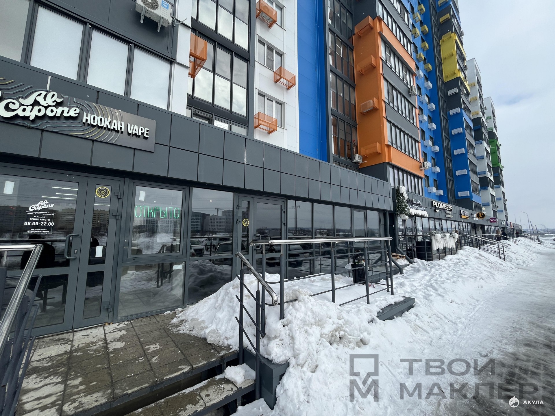 Есть отдельный вход и панорамное остекление, которое позволит привлечь внимание потенциальных клиентов.