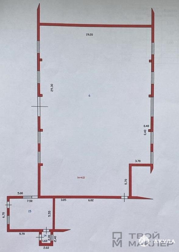 Высота потолков в складе -от 4.2м. до 5.95 м;