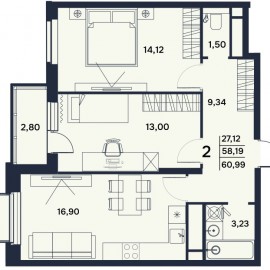 Продается 2 комнатная квартира по ул. Электрический пр-д 7 , в ЖК «Гармония» . 17 этажный монолитно-кирпичный дом комфорт-класса с современной площадкой, закрытой территорией с видеонаблюдением и концепцией двор без машин. ДОМ СДАН. Общая площадь: 60.99 кв.м. Жилая площадь: 27.12...
