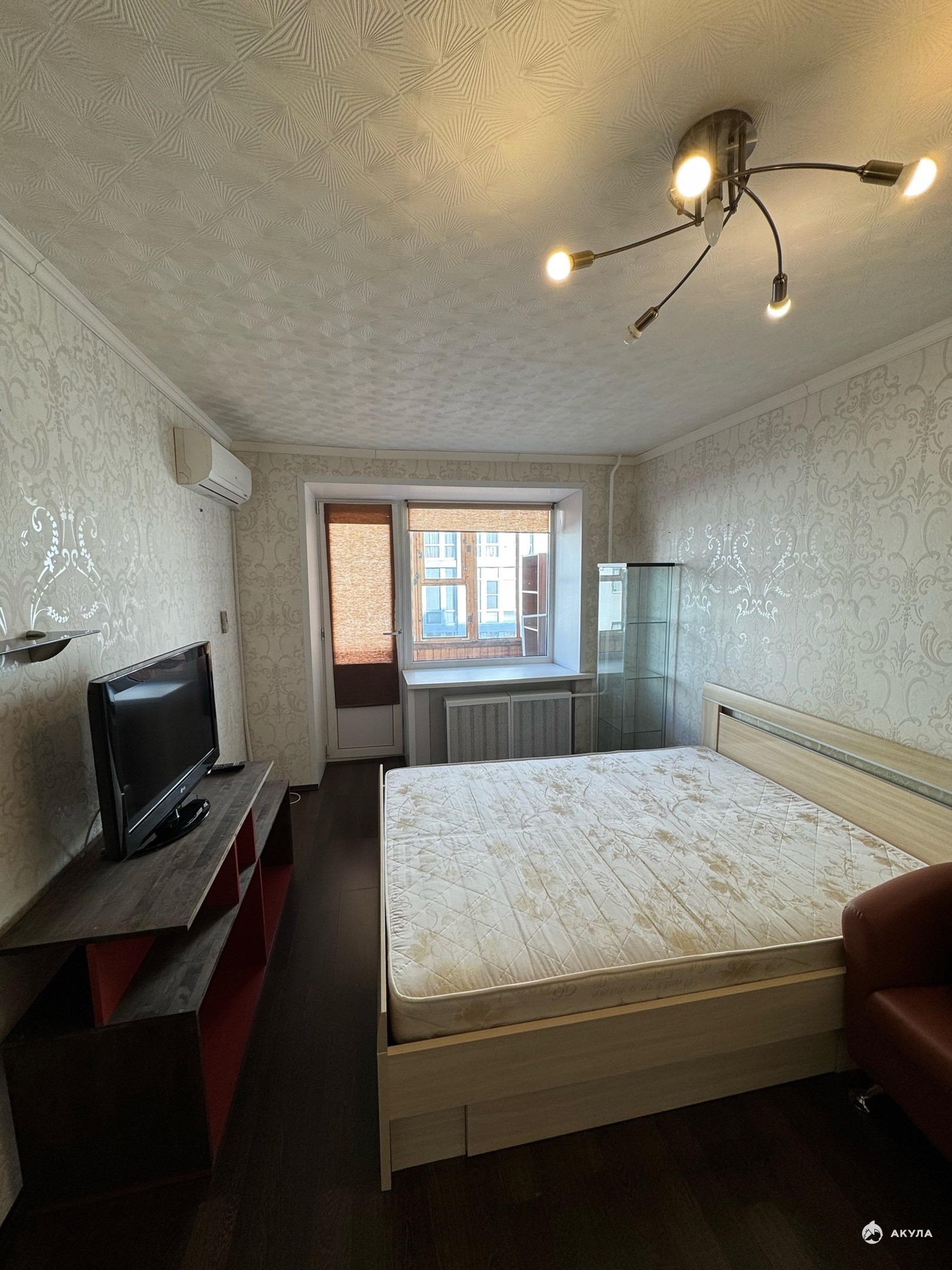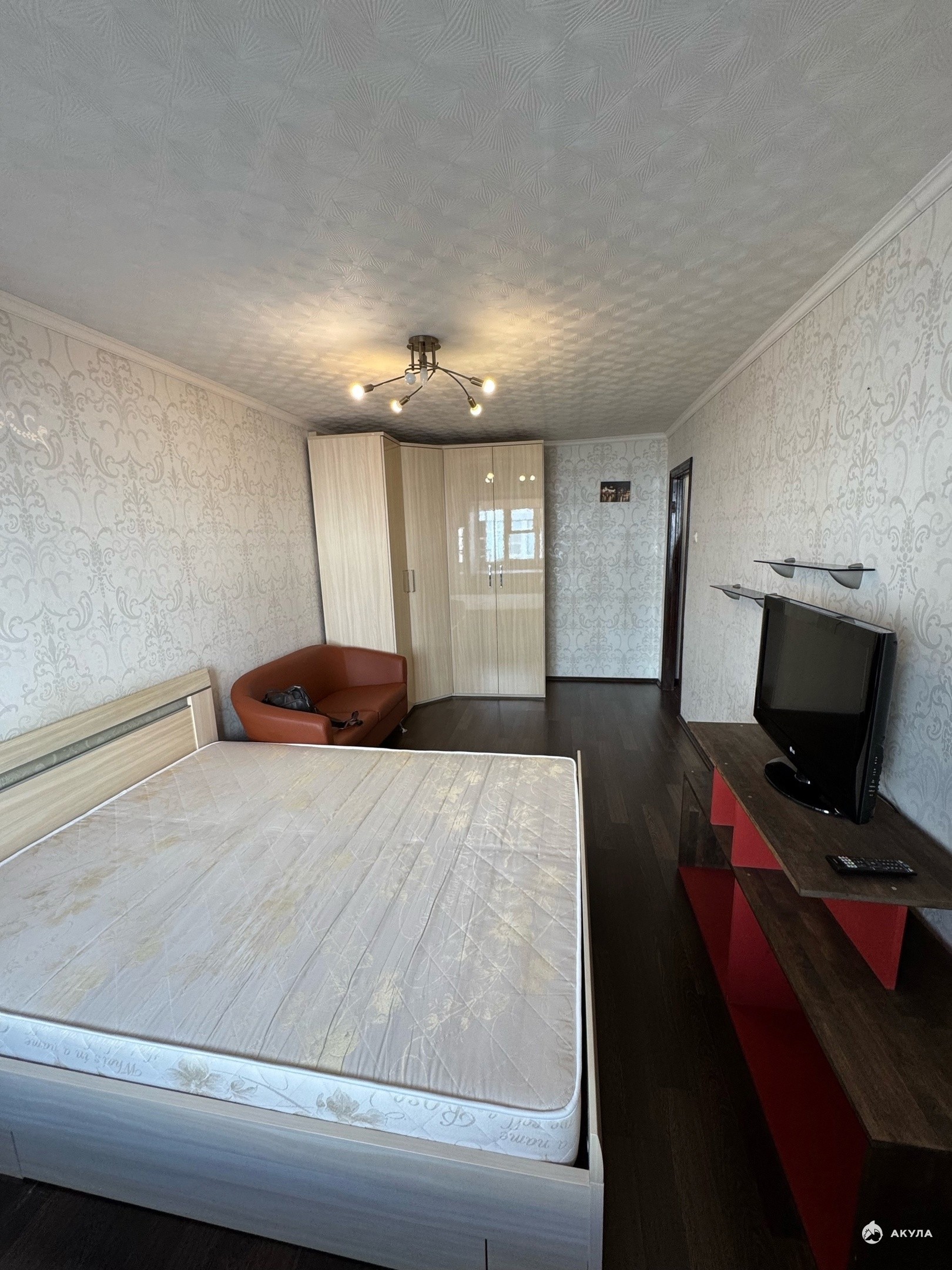 диван, встроенный шкаф-купе с большим зеркалом, телевизор, письменный стол; Так же вся необходимая бытовая техника: