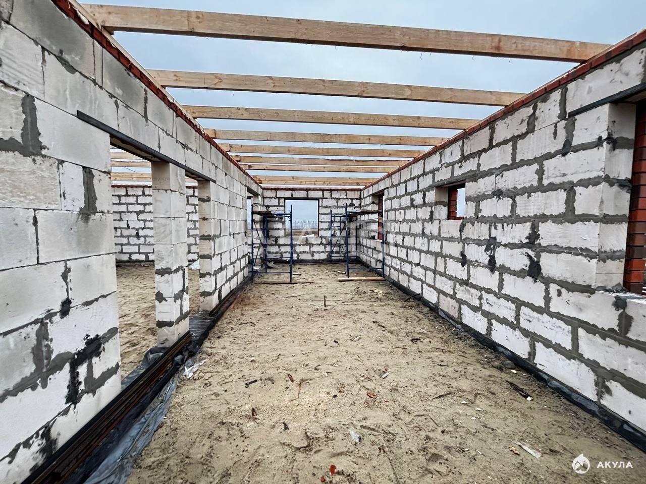 Фундамент и коробка: Прочное и надежное строение площадью 102 кв.м. Перекрытие — натуральная деревянная доска. Крыша.