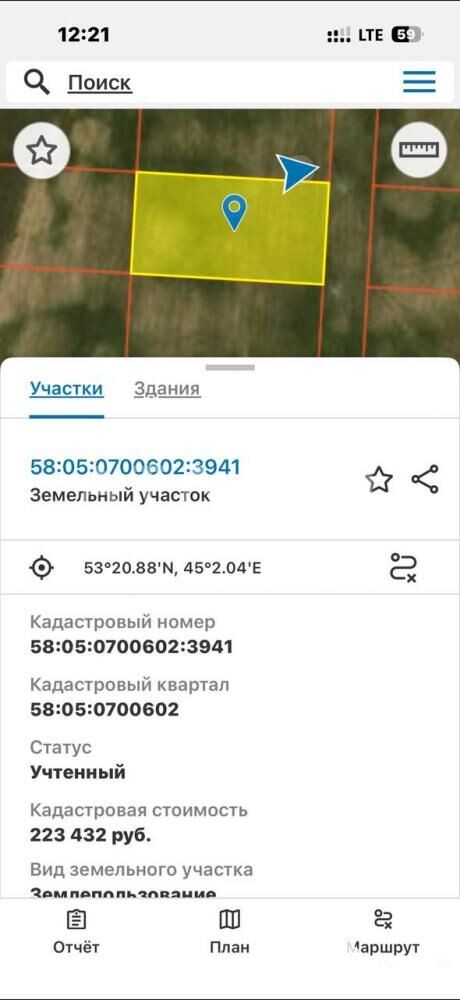 - Площадь участка