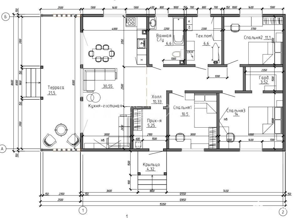 Общая площадь дома - 137кВ.м