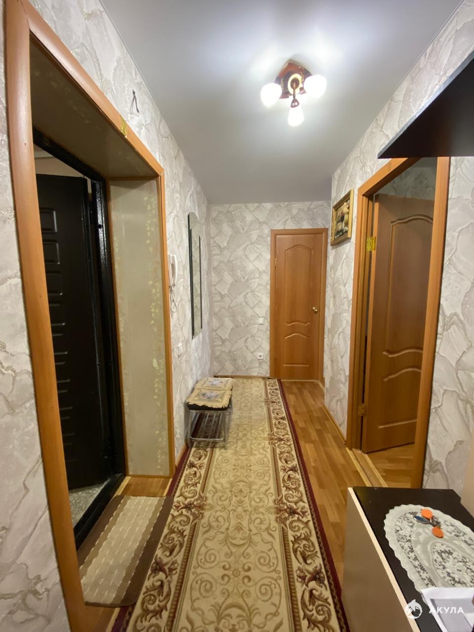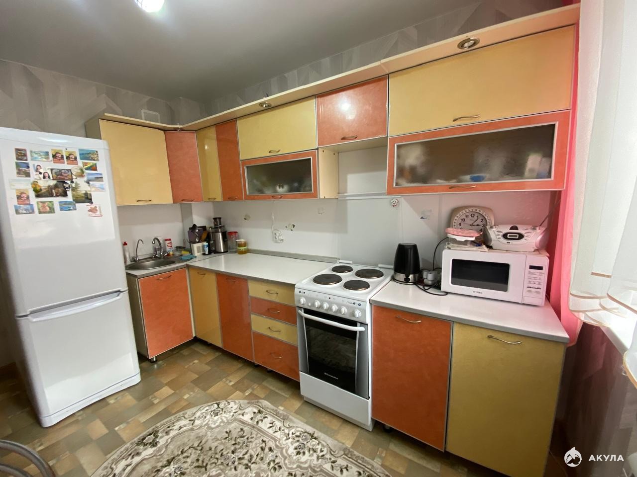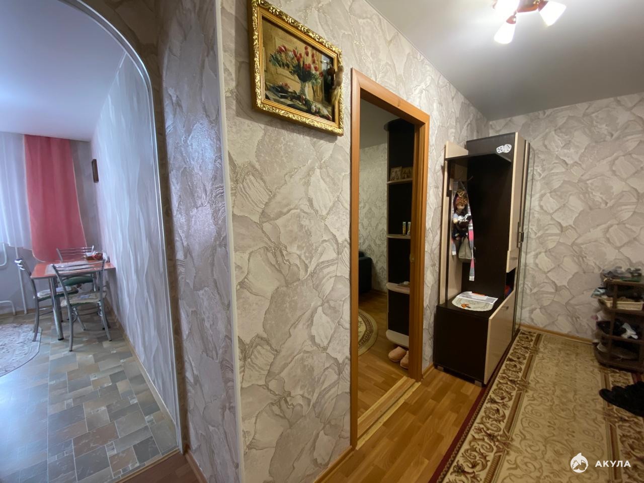 Стены новые обои, натяжные потолки, полы линолеум, установлены пласт/окна, сан. узел совмещенный, стены отделаны пластпанелями, на полу кафельная плитка, на кухне установлен фильтр для очистки воды.