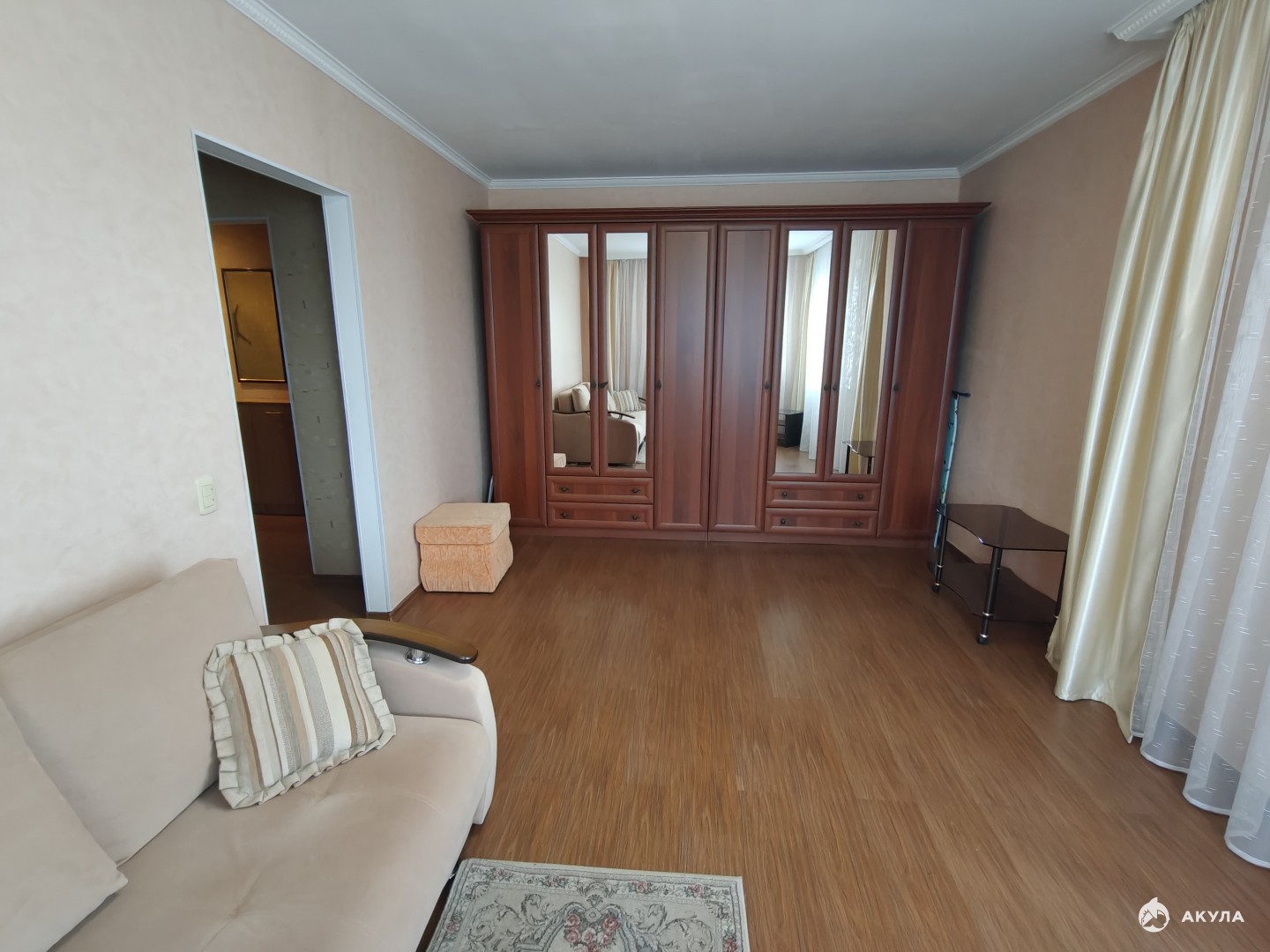 Квартира в хорошем состоянии. Стены, потолки и полы выровнены. Лоджия застеклена. Пластиковые окна, металлическая дверь.