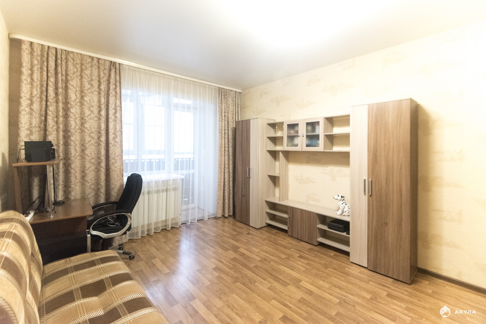 Общая площадь квартиры 35, 8 кв.м (без учета лоджии) + лоджия с панорамным остеклением (6, 2 кв.м); 2 выхода на лоджию: из комнаты и из кухни.