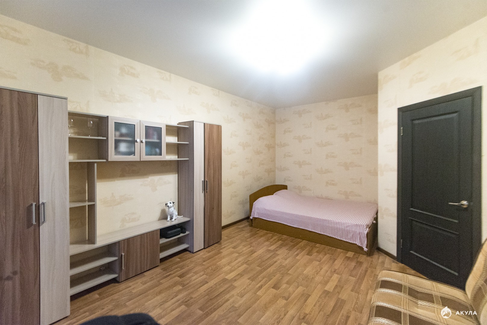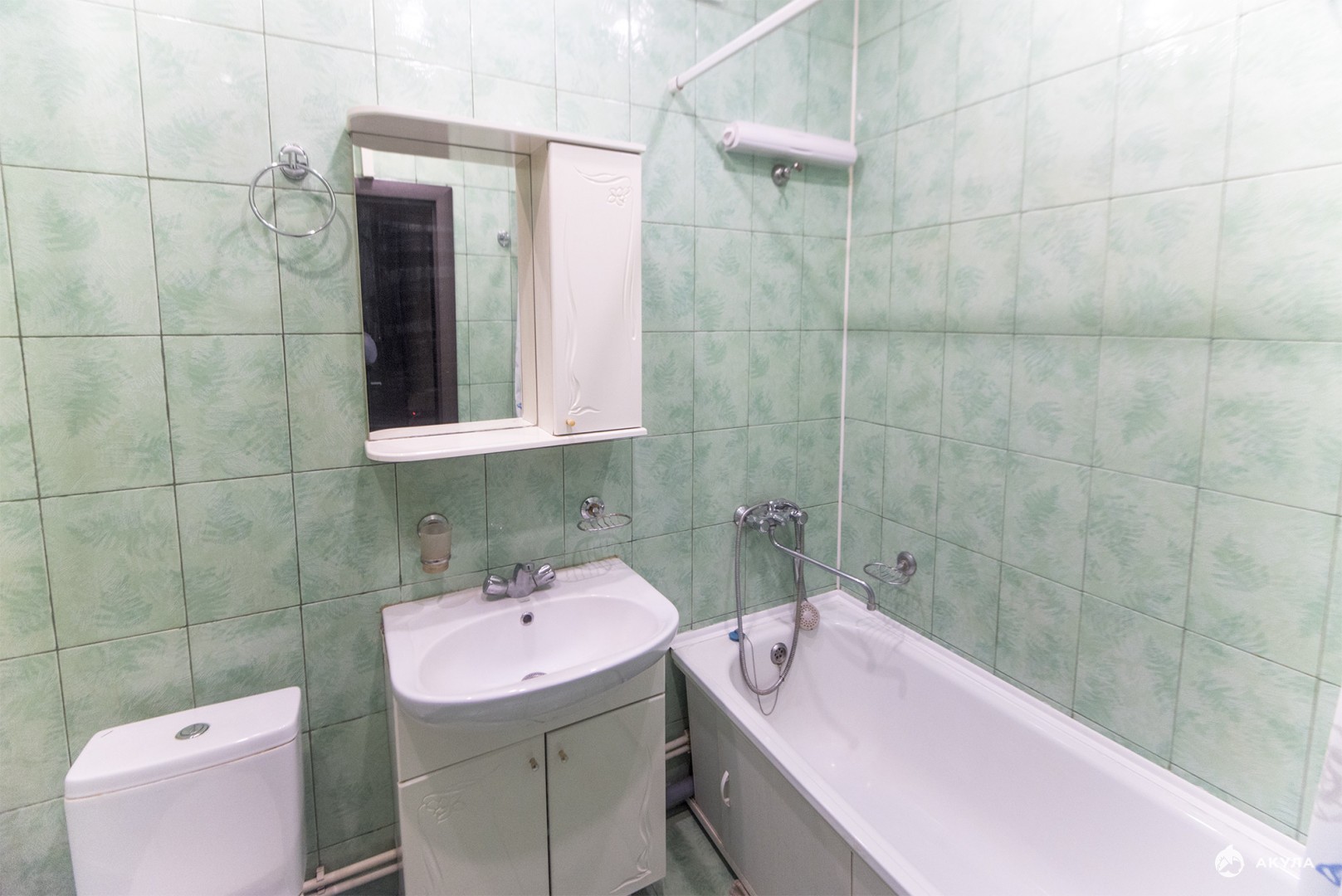 Комната 18, 7 кв.м, кухня – 8, 7 кв.м, санузел совмещенный отделан керамической плиткой.