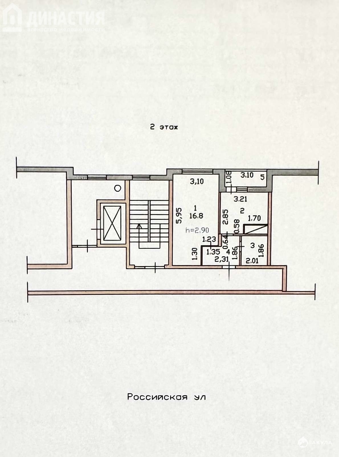 Высокие потолки – 2, 9 м!