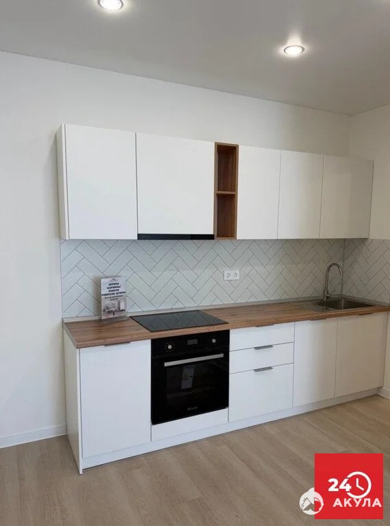 - В ПОДАРОК в квартире сразу будет установлен кухонный гарнитур с встроенной техникой: духовой шкаф, вытяжка, стиральная машина