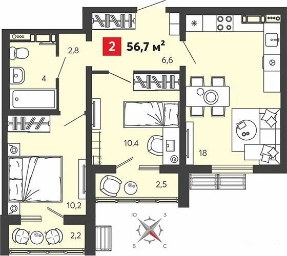 Продаются 2 комнатные квартиры ул. Алая , 75 стр. , «Радужные дворы» , Спутник