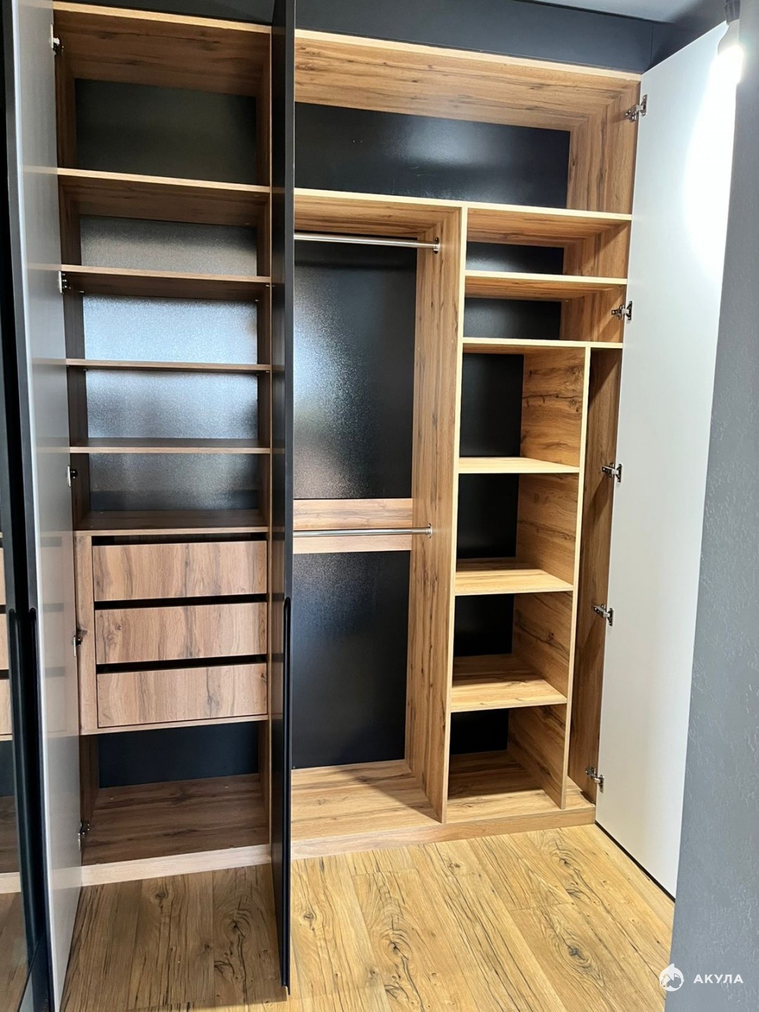Встроенная шкаф/система хранения маг. Мажор, также от этих ребят тумба в ванной и встроенная система хранения в прихожей.