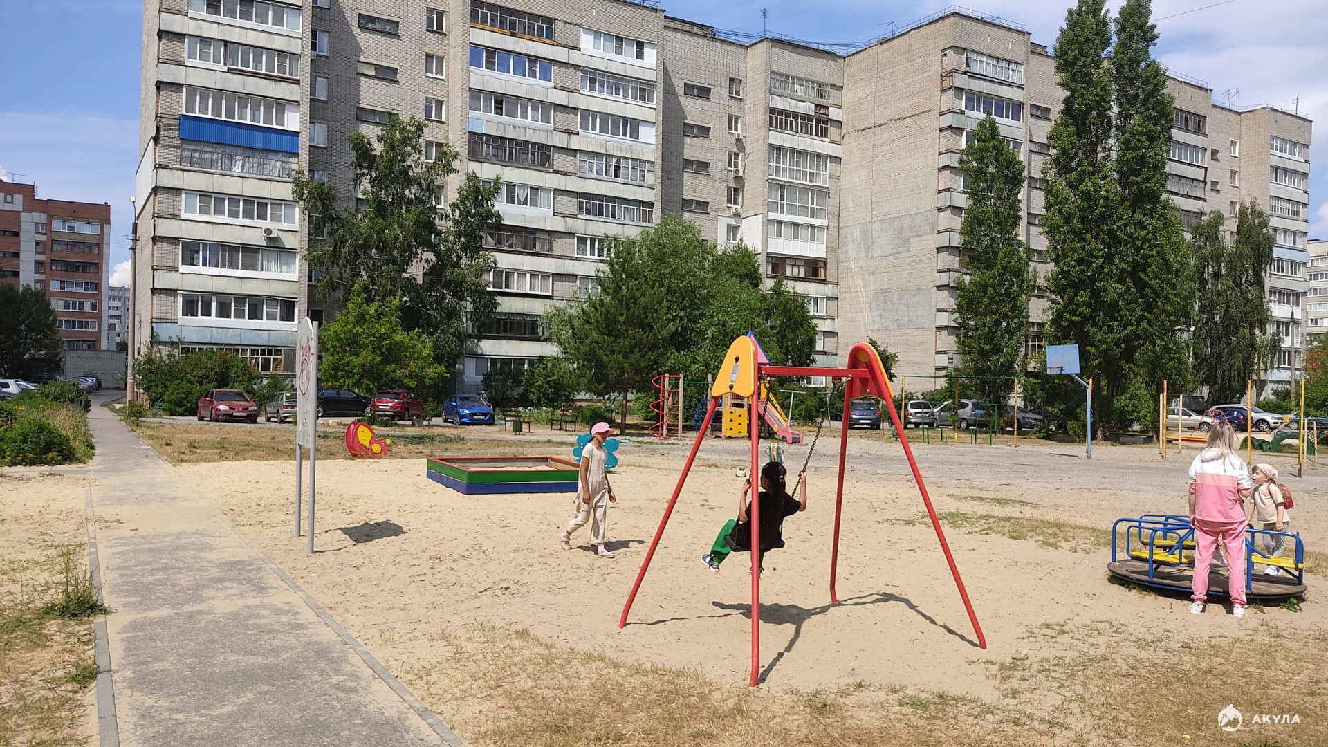 + Просторный двор с большой детской площадкой. Достаточно много парковочных мест.