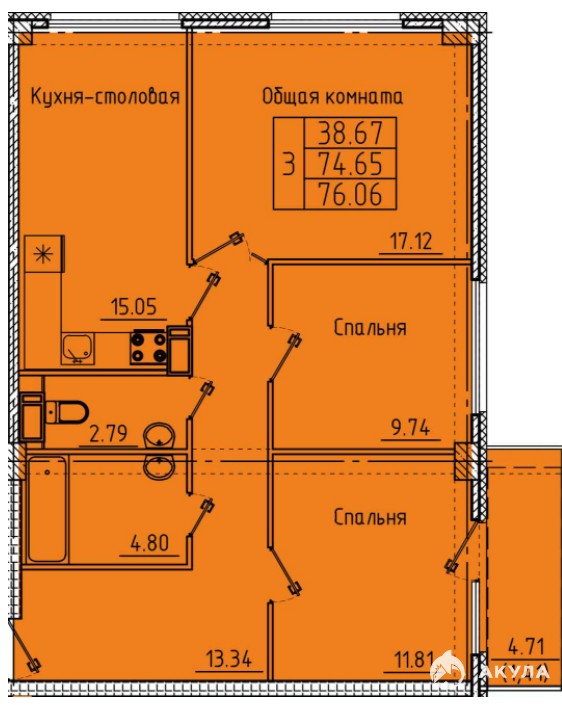 Общая площадь - 76.06 кв.м