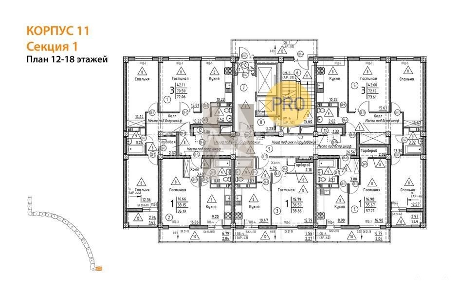 Квартира: 3 к 72, 06 кв.м., 14 этаж в комплексе Арбековская Застава 7 мкр, 6 очередь, корп.11, сдача: 4кв. , этажей: 18, адрес Пенза г., 65-летия Победы ул., , Застройщик: Территория Жизни.
