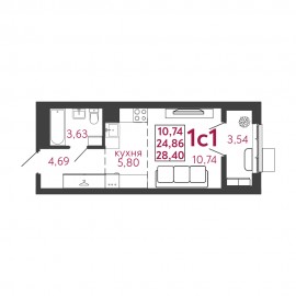 id:691. Представляем вашему вниманию уютную квартиру-студию в кирпично-монолитном доме! Квартира располагается на 4-м этаже 10-этажного здания. Общая площадь - 34, 3 кв.м.; Жилая площадь - 26, 2 кв.м.; Кирпичный дом гарантирует хорошую звуко- и теплоизоляцию, а продуманная...