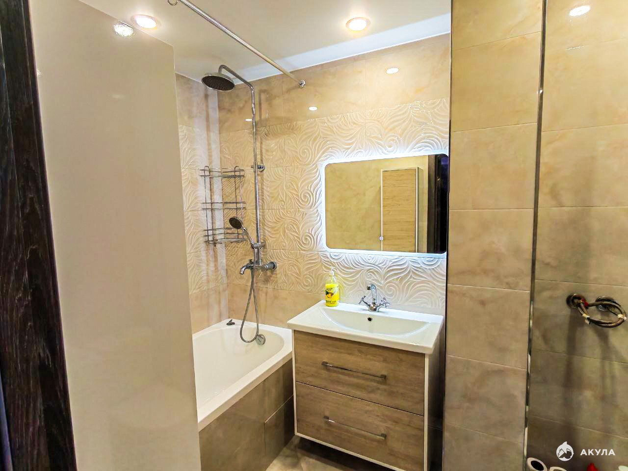 Еще две комнаты свободны. Санузел совмещенный, установлен тропический душ и зеркало с подсветкой.