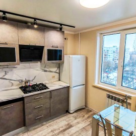 Арт. 127417608 В квартире установлена бытовая техника: новая стиральная машина-автомат, новая микроволновка, холодильник, духовой шкаф, телевизор. Меблированы кухня и спальня. На кухне – гарнитур, обеденный стол. В комнате – двуспальная кровать с прикроватными тумбами. Выход...
